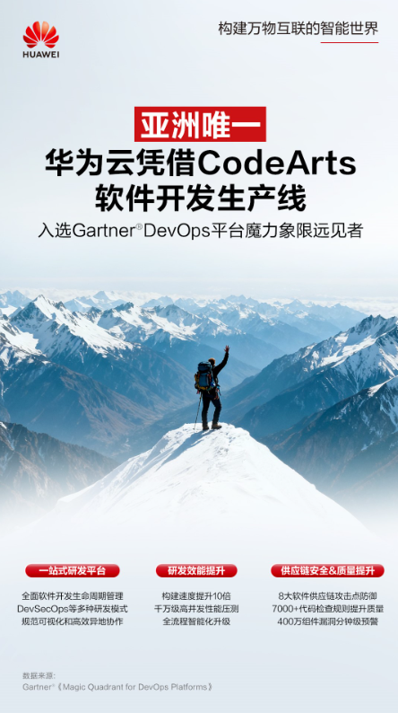 近日,Gartner发布2025年《DevOps平台魔力象限》报告,华为云凭借CodeArts软件开发生产线入选远见者象限,是此次进入魔力象限的亚洲唯一厂商,也意味着华为云在DevOps领域进入全球领先厂商行列。