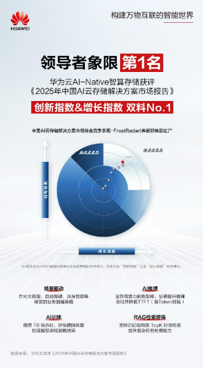 近日,在2025数博会期间,华为云AI-Native智算存储面向自动驾驶全生命周期打造的一体化存储方案备受客户关注。会上披露,华为云AI-Native智算存储基于行业场景驱动的技术创新和发展能力获得了第三方国际权威机构的高度认可:弗若斯特沙利文(Frost & Sullivan)发布《2025年中国AI云存储解决方案市场报告》,华为云AI-Native智算存储获得“创新指数”和“增长指数”双料第1,位列领导者象限第1名。