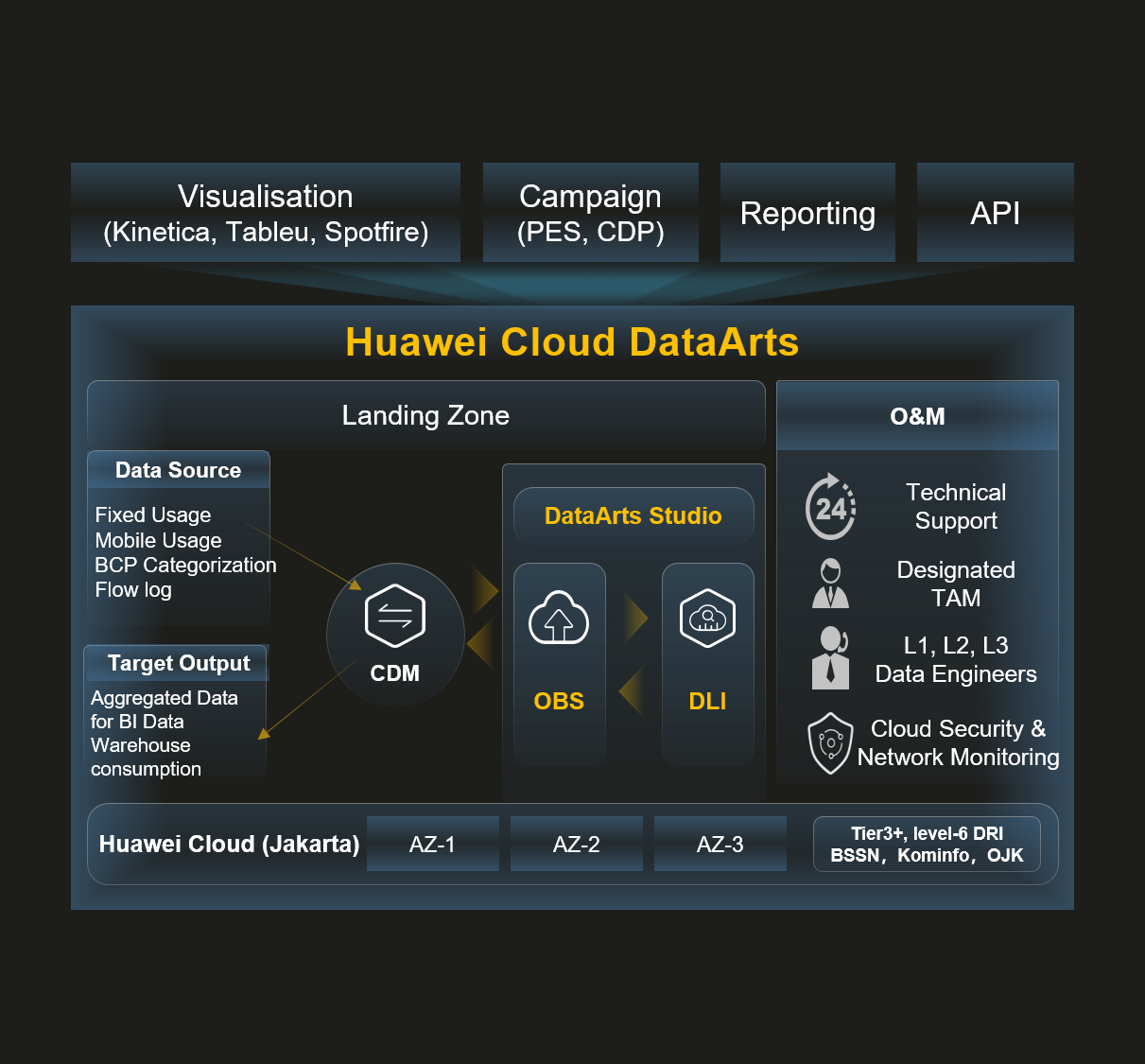 Telkomsel moved BCP Datalake to Huawei Cloud after completing IT and Cloud Suitability Assessments in 2023. The cloud platform was selected for its flexibility, scalability, and ability to support Telkomsel’s BI cloudification journey.
