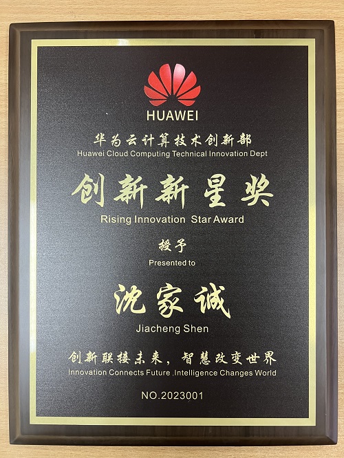 罗旭川同学、沈家诚同学在云存储创新Lab 实习期间参与分离式内存相关的研究,表现突出,荣获创新新星奖。