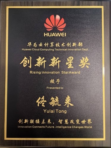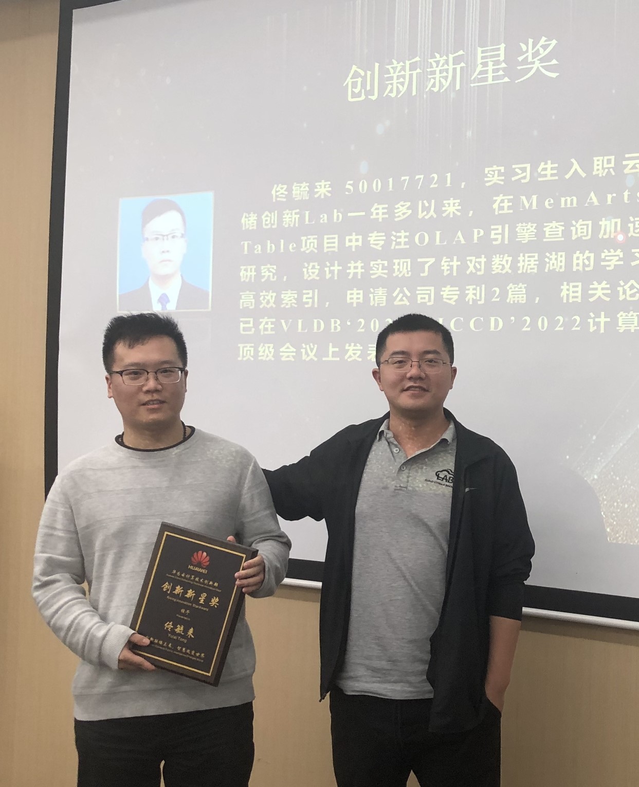 佟毓来同学在云存储创新Lab 实习期间参与多个项目研究,表现突出,荣获创新新星奖。