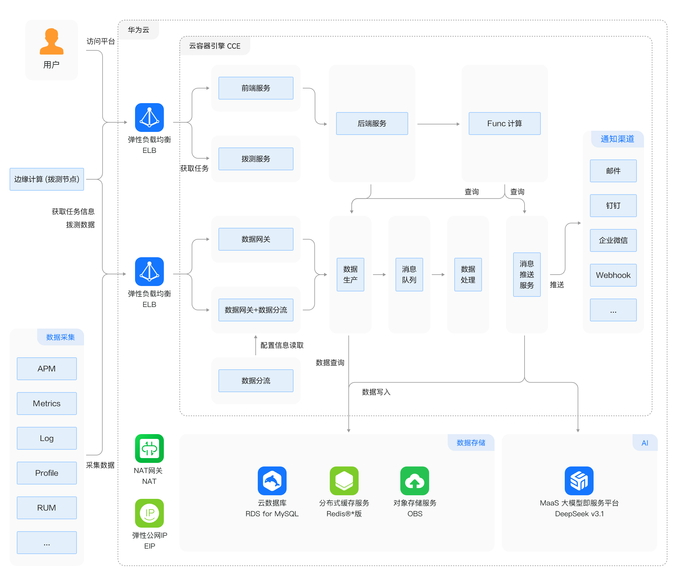 观测云接入华为云的MaaS产品,最新版本已提供AI能力,包括智能体、AI告警和AI故障分析等。