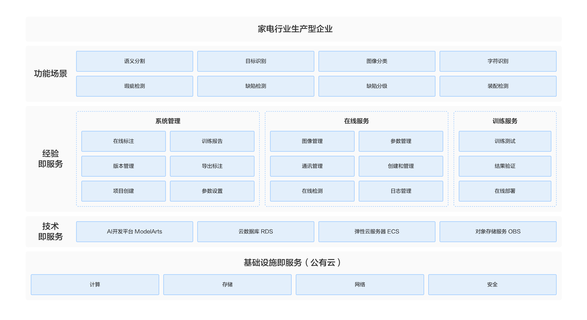本项目方案以华为云及底层强大的算力为支撑,结合弹性伸缩的服务器资源、ModelArts人工智能开发平台Atlas智能计算平台等华为全栈服务能力,能够有效保证项目的顺利进行,为客户呈现一套“开箱即用、弹性生长、普惠高质”的 AI 解决方案。