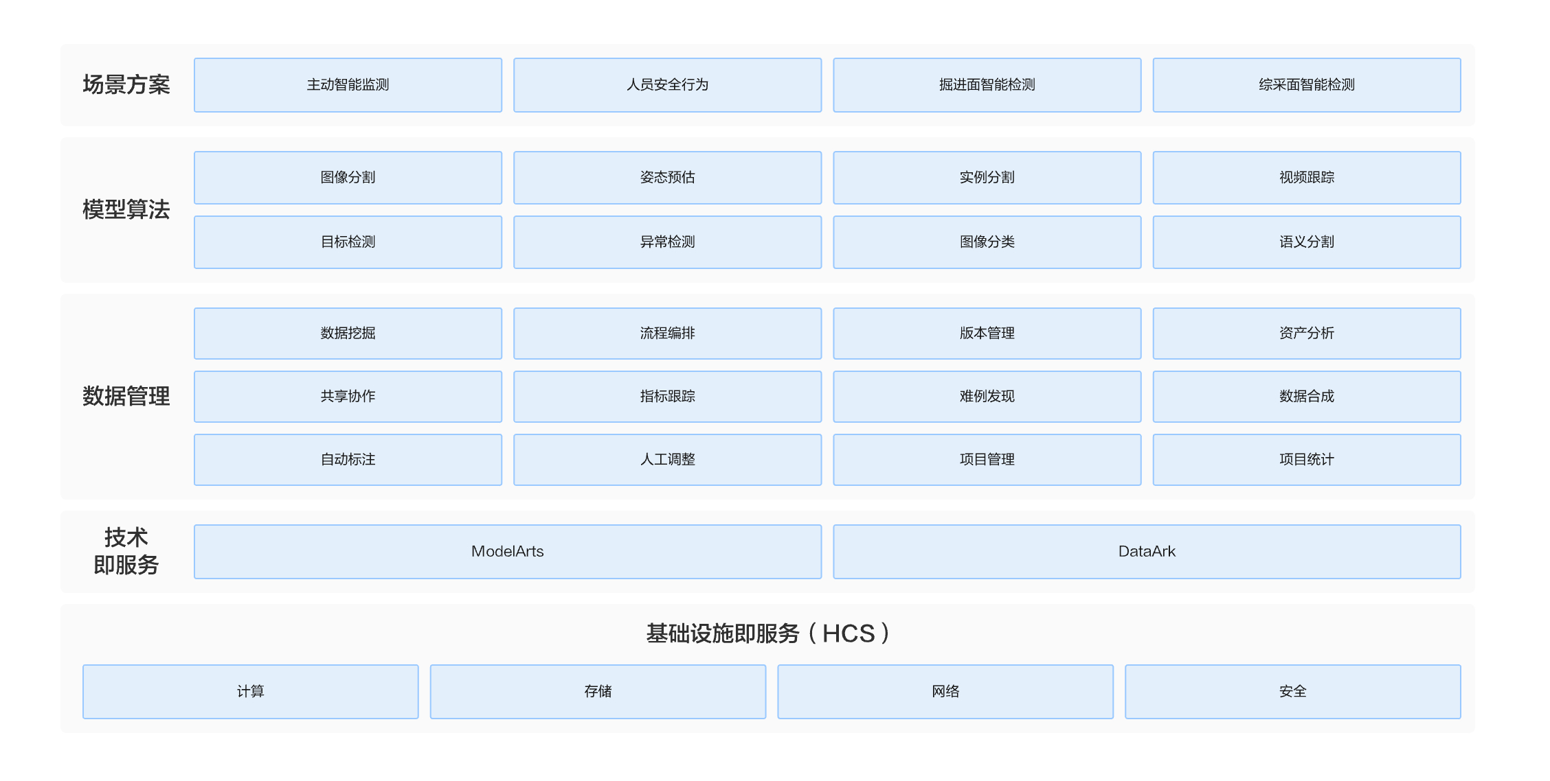 3、方案价值:华为云通过星尘数据CV标注能力快速实现高质量数据集的构建,并通过ModelArts快速开启矿山AI大模型的训练,助力矿山AI大模型实现滚筒、护帮板防碰撞检测、着装检测;皮带卡子损坏检测、主运异物识别、刮板运输机异物识别;前探梁未接顶识别、未进行前探梁支护识别、敲帮问顶作业检测、探放水作业钻杆深度合规检测、防冲卸压钻杆深度合规检测等多种CV检测算法。