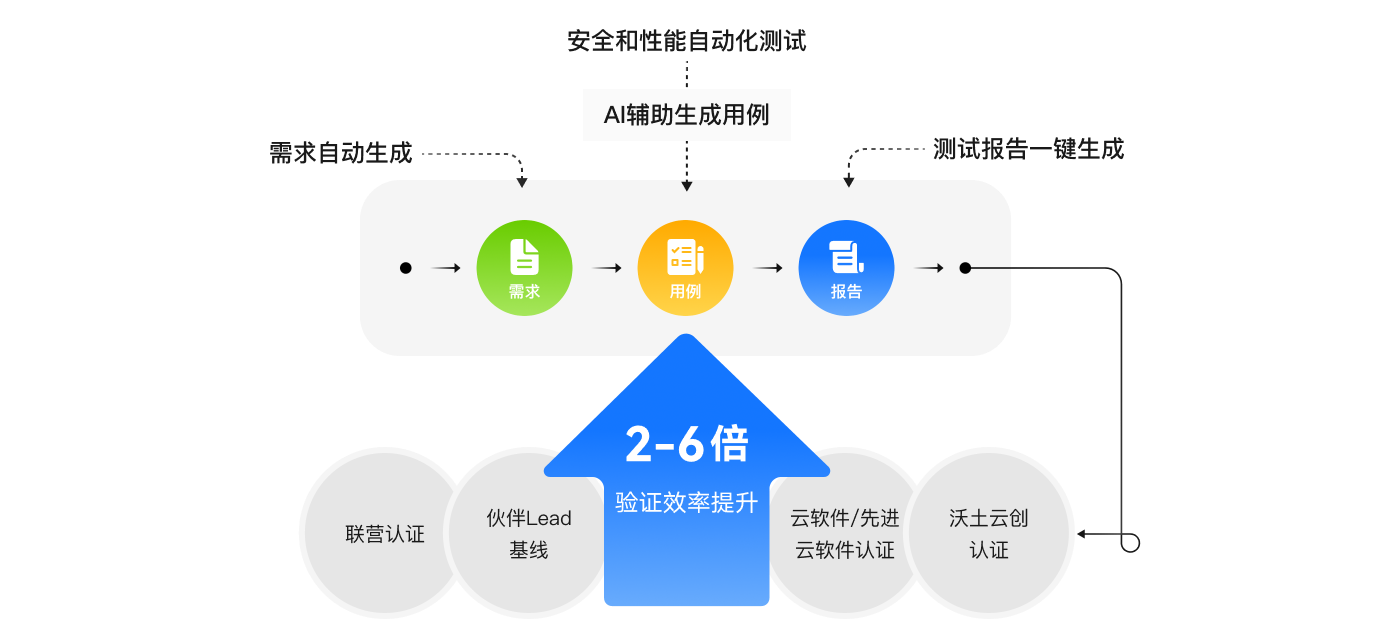 场景介绍:验证中心提供多种强大功能,包括自动化测试、测试需求自动化生成、AI辅助用例生成、报告一键生成以及测试报告自动化审核等特性。这些功能极大提升了联营/伙伴Lead/云软&先进云软/沃土云创验证的效率,确保了整个验证过程的高效和便捷。