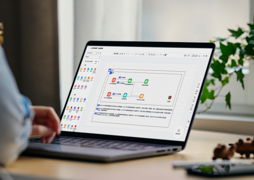 设计中心可以通过智能推荐的模板一键引用到可视化架构设计器中。二次编辑可以高效地完成联营/伙伴Lead/云软&先进云软/沃土云创技术架构设计,显著提升设计效率和质量。