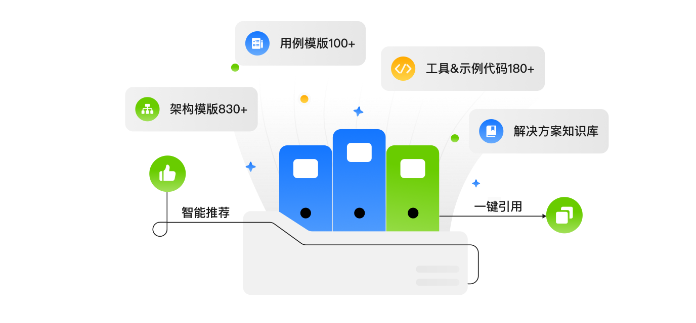 丰富的资产包括830+架构模板、100+用例模板、工具和示例代码,以及丰富的知识库。