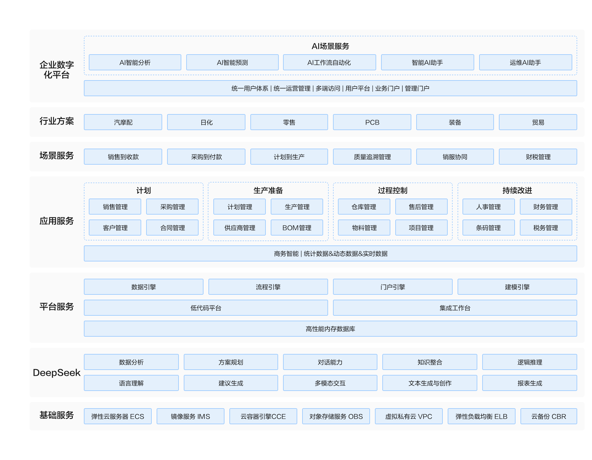 覆盖企业研、产、财、供、销、服等端到端业务管理需求