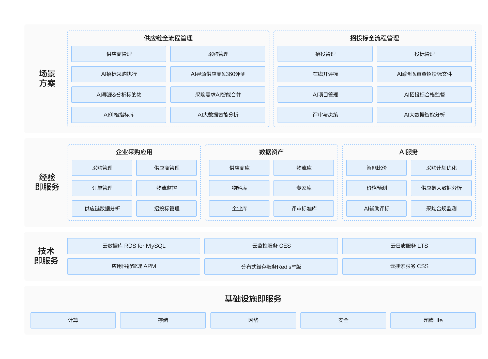 - AI+大数据驱动项目流程,优化资源配置、缩短周期、预警风险;覆盖招标采购全流程,AI 辅助编审文件,防疏漏降本,保障合规