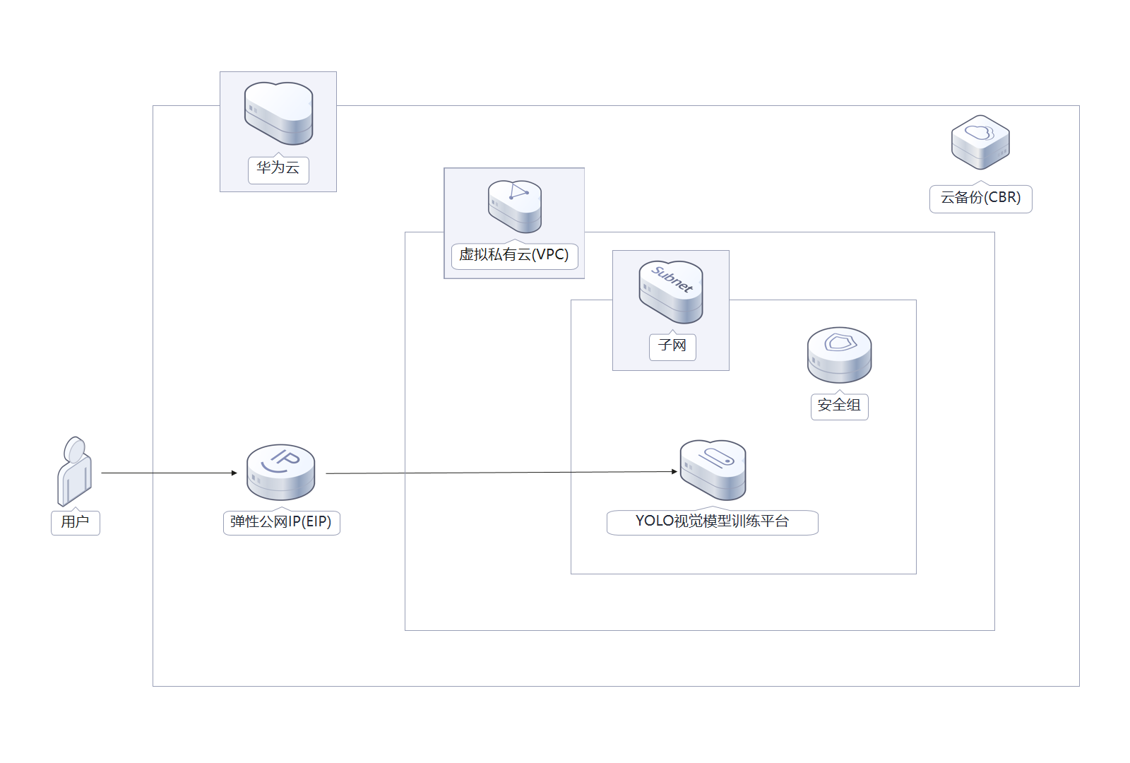该解决方案基于华为云弹性云服务器 ECS(GPU 云服务器)构建,旨在帮助用户快速搭建一套YOLO 视觉模型全流程训练平台。该平台以可视化交互为核心,深度整合计算机视觉开发全链路能力,覆盖在线数据标注、数据集精细化管理、模型版本控制、训练任务调度及目标检测推理五大核心模块。通过直观的图形化界面,方案有效降低了 YOLO 模型的使用门槛,支持用户高效完成从数据准备到模型部署的全生命周期管理。