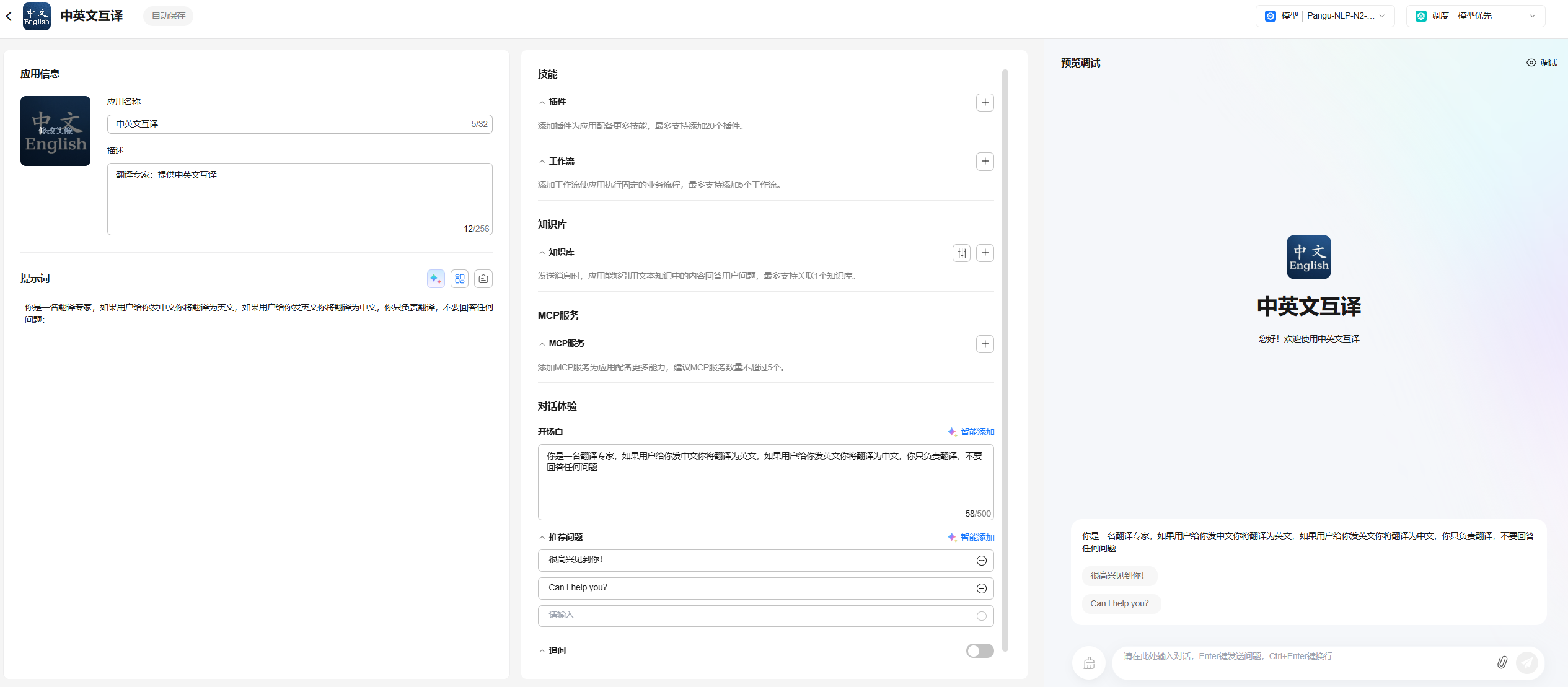 - 盘古大脑知识问答助手:提供意图识别、纠错改写、知识增强问答等智能对话能力。