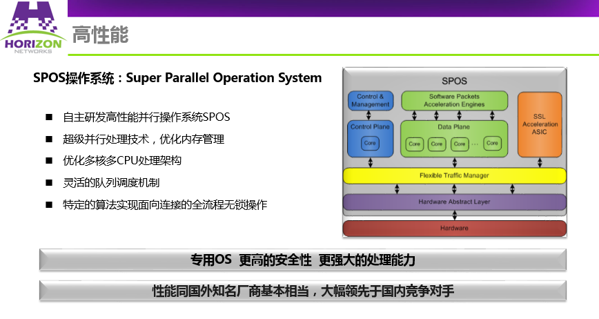 采用了独创的SPOS超级并行处理架构,使L4-L7处理性能有了巨大提升,设备单位性能的功耗比同类产品降低60%;结合各种应用优化技术;TCP连接服用、HTTP压缩、快速缓存以及SSL加速等,显著改善了用户体验。